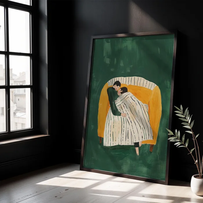 Product: Aşkın Sessizliği - Sarılıp Uyumak Wooden Framed Wall Art