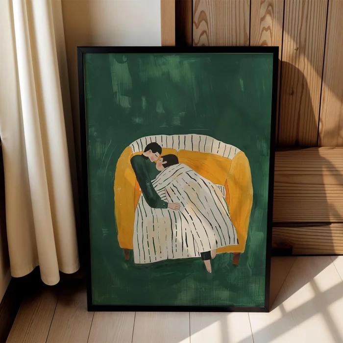 Product: Aşkın Sessizliği - Sarılıp Uyumak Wooden Framed Wall Art
