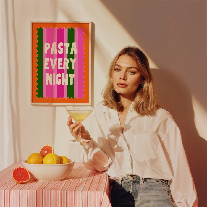 Product: Cake Every Night Her Day Pasta Typography Kitchen Wall Art