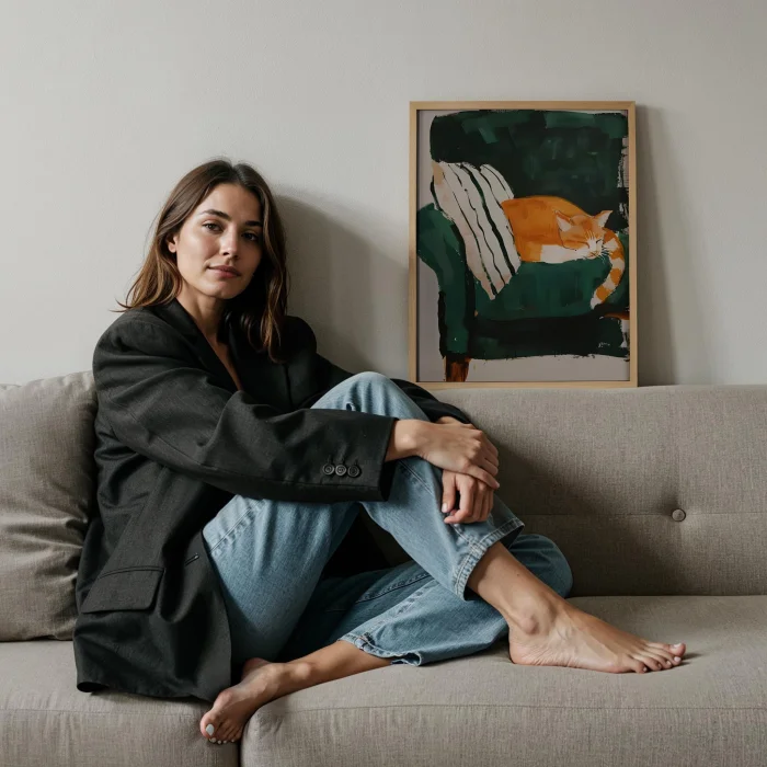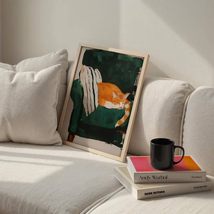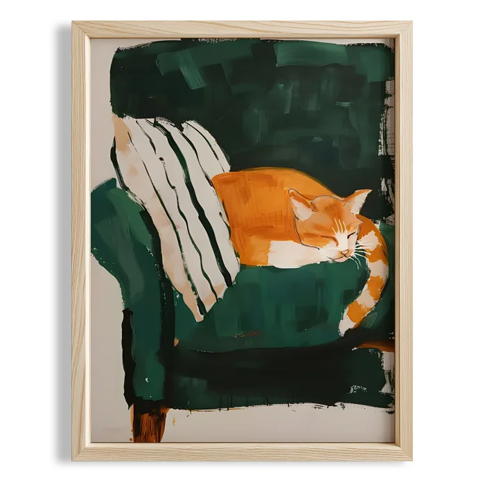 Product: Cat & Armchair I - Emerald Armchair Wooden Framed Print