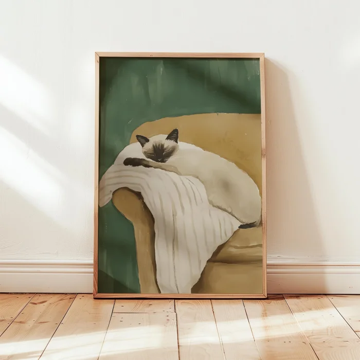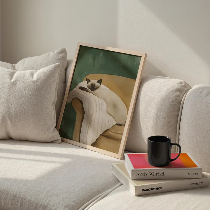 Product: Cat & Blanket Ii - Beige Sofa Wooden Framed Print