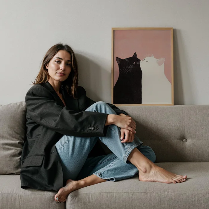Product: Cat Portrait - Aşkın Sessizliği Wooden Framed Wall Art