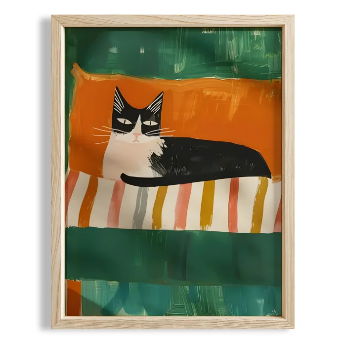 Product: Cat Portrait Emerald And Orange Wooden Framed Print