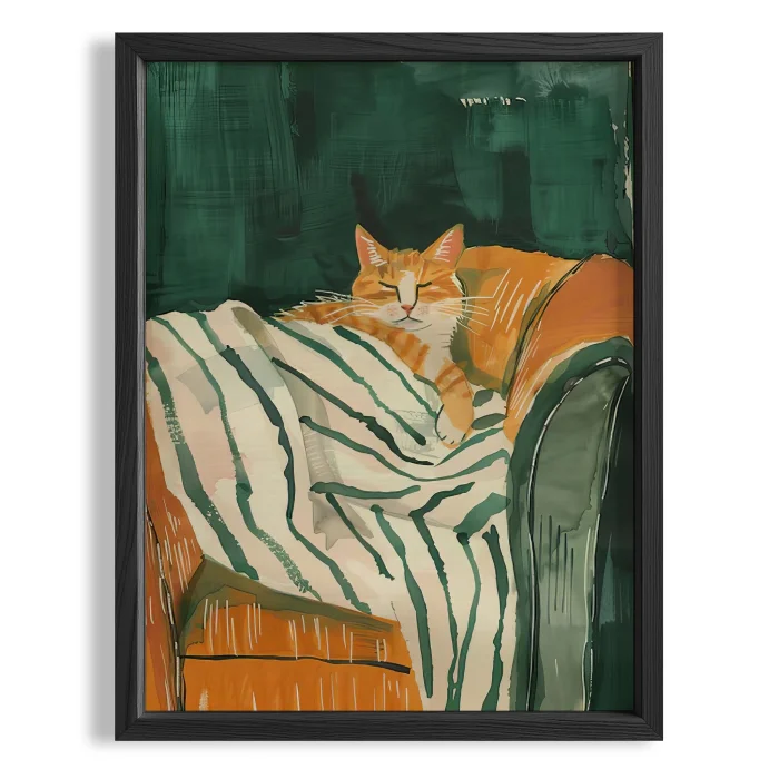Product: Cat Portrait - Emerald Striped Wooden Framed Wall Art