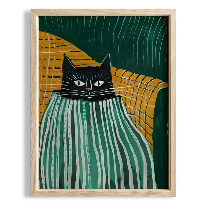 Product: Cat Portrait Ii - Striped Sweater Wooden Framed Print