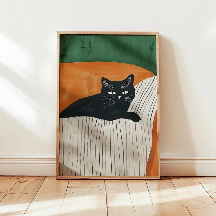 Product: Cat Portrait - On Mustard Cushion Wooden Framed Print