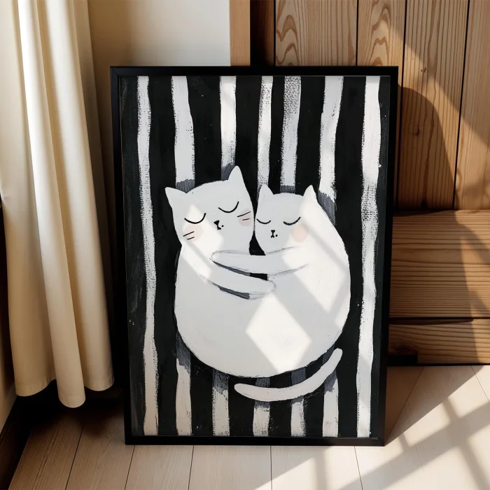 Product: Cat Portrait - Siyah Striped Çift Cat Wooden Framed Wall Art