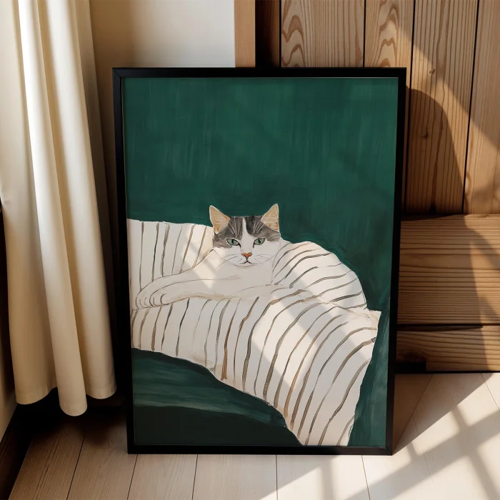 Product: Cat Portrait - Tekir Striped Wooden Framed Wall Art