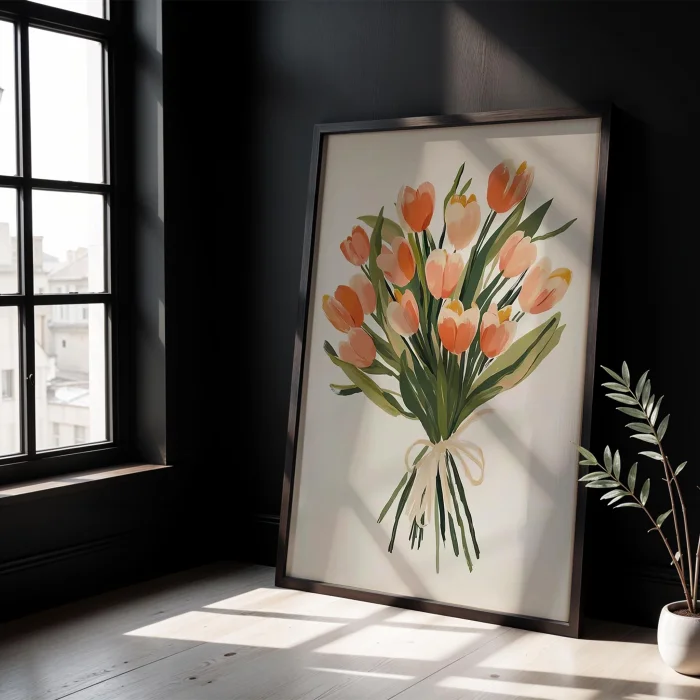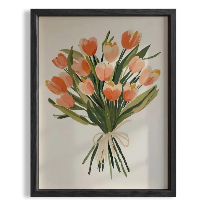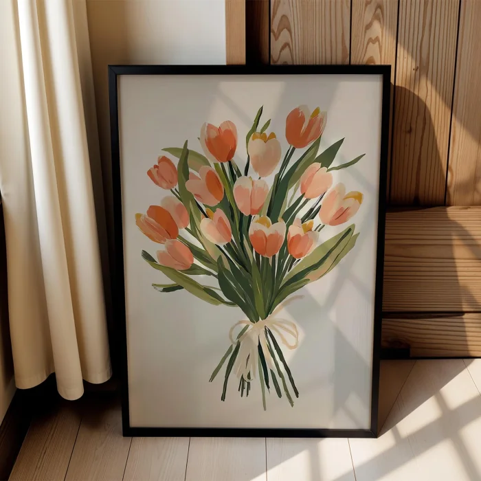 Product: Çiçek Buketleri - Pink Laleler Wooden Framed Wall Art