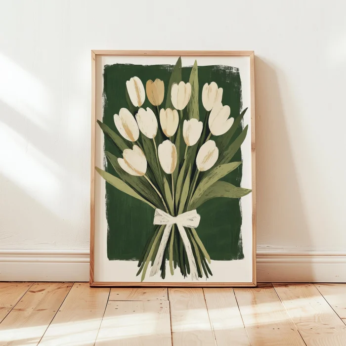 Product: Çiçek Buketleri - Zarif Laleler Wooden Framed Wall Art