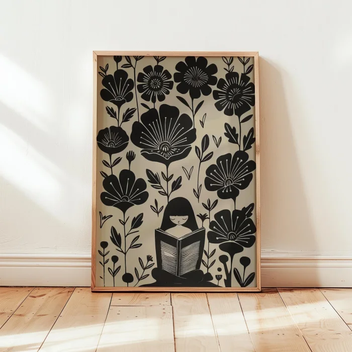 Product: Çiçekler İçinde Book Okuyan Woman Wooden Framed Wall Art