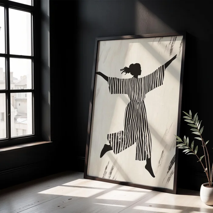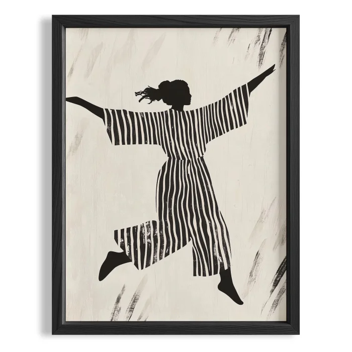 Çizgilerin Dansı - Siyah Striped Özgürlük Wooden Framed Wall Art