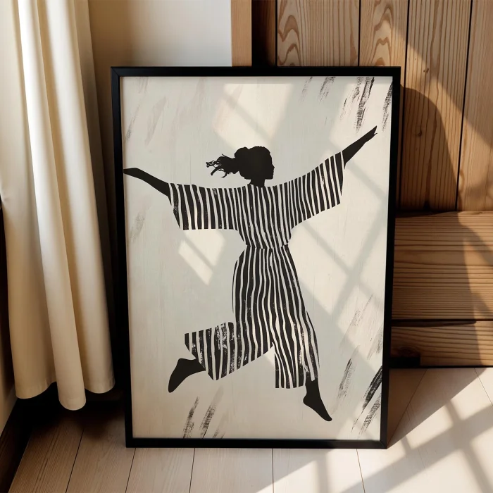 Product: Çizgilerin Dansı - Siyah Striped Özgürlük Wooden Framed Wall Art