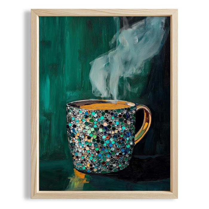 Product: Coffee Cup - Mosaic Emerald Wooden Framed Wall Art