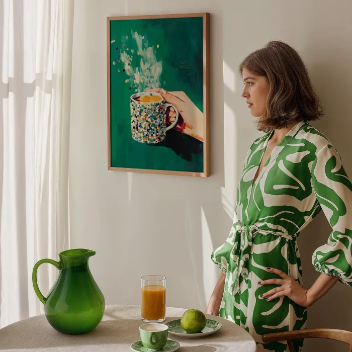 Product: Coffee Cup - Mosaic Emerald Wooden Framed Wall Art