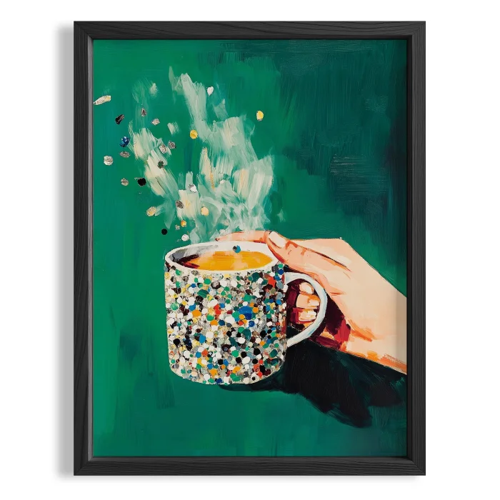 Product: Coffee Cup - Mosaic Emerald Wooden Framed Wall Art