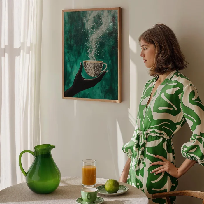 Product: Coffee Cup - Mosaic Emerald Wooden Framed Wall Art