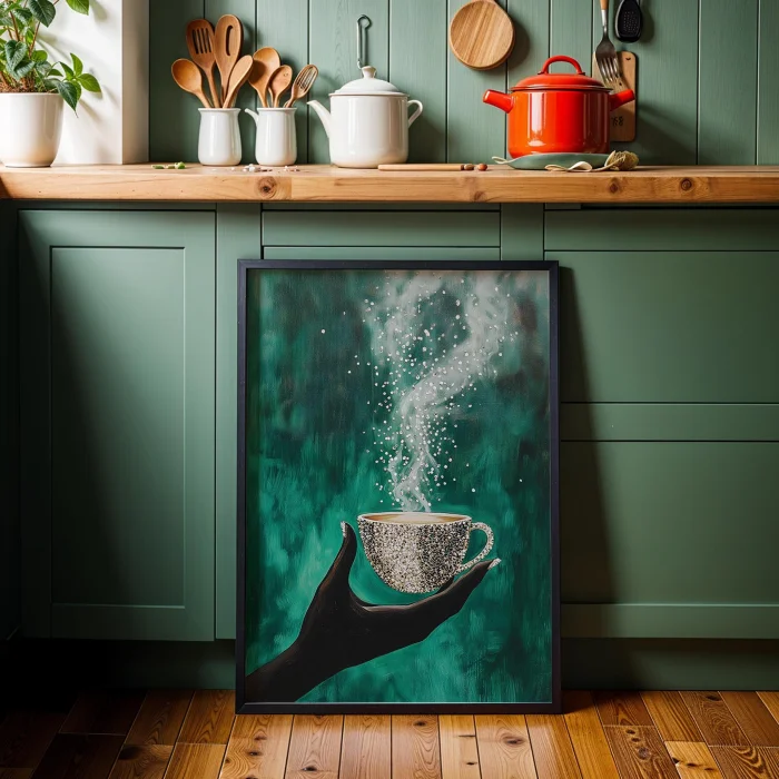 Product: Coffee Cup - Mosaic Emerald Wooden Framed Wall Art