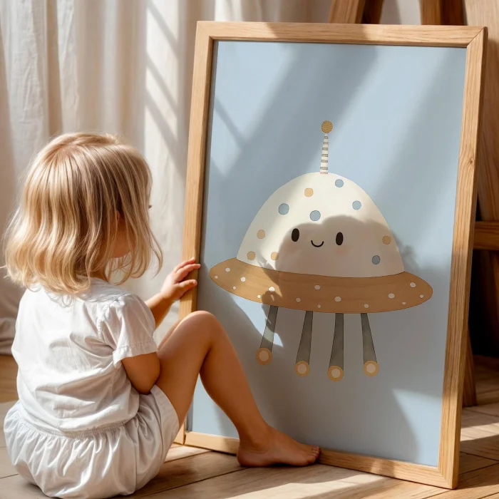 Product: Cute Ufo Space-themed Kids' Room Wooden Wall Art Ii