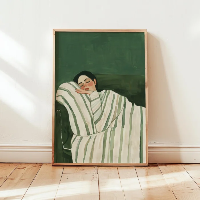 Product: Dinlenen Woman - Emerald Wooden Framed Wall Art