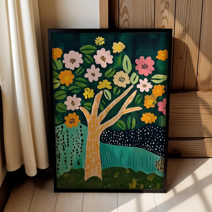 Product: Doğa Ağacı - Çiçekli Dallar Wooden Framed Wall Art