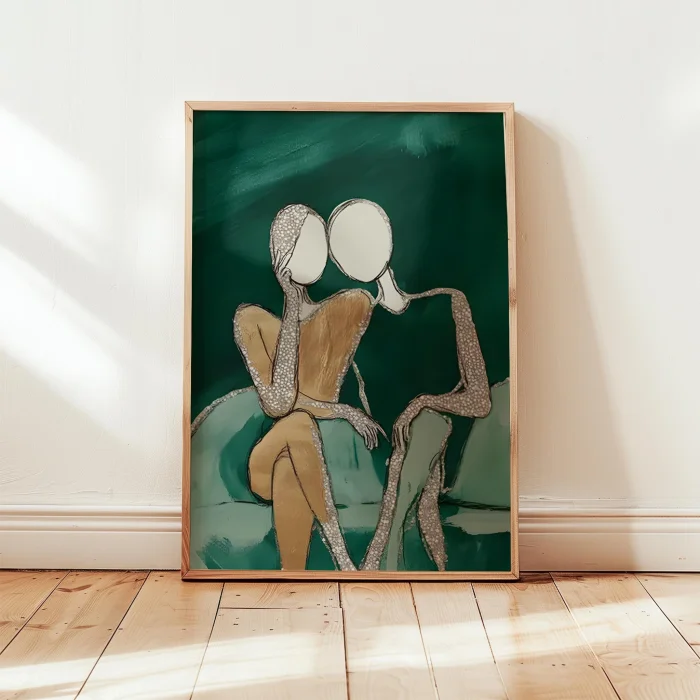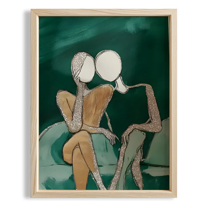 Product: Dual Silhouette Ii - Emerald Armchair Wooden Framed Print