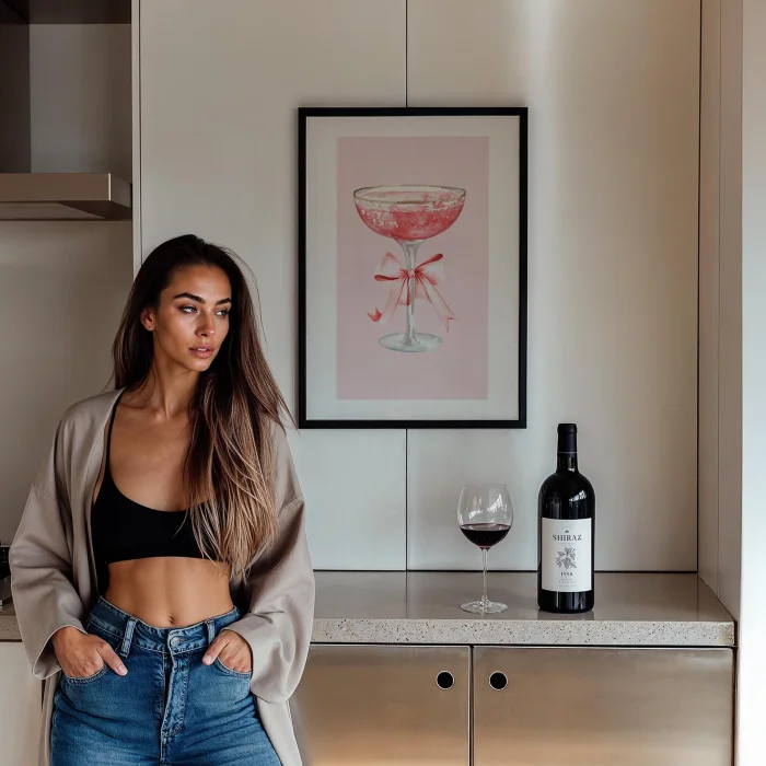 Fiyonklu Champagne Glass Cocktails Kitchen Wall Art