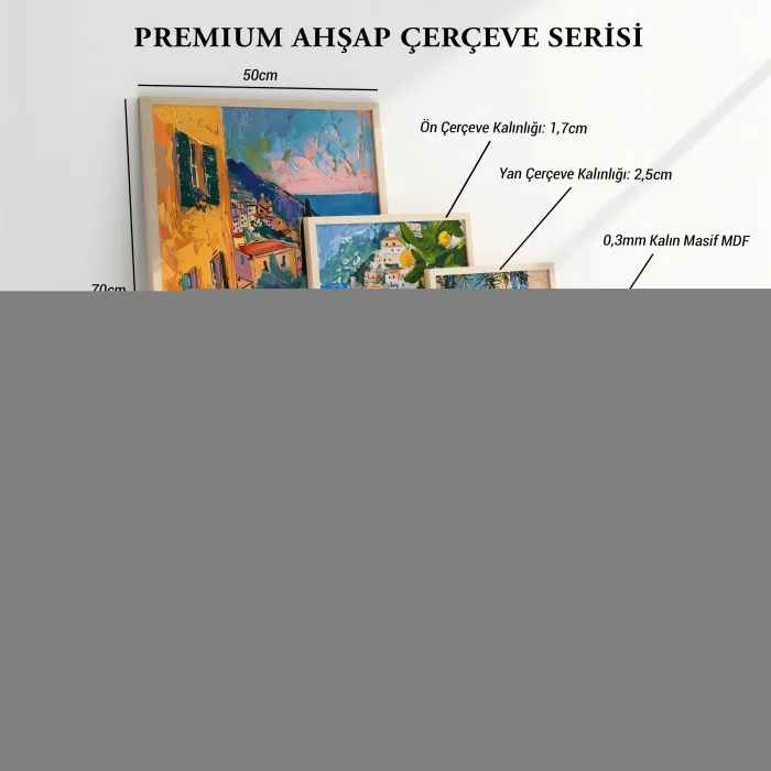 Artiera's handcrafted wood-framed paintings are not posters; It is produced on a wooden MDF floor with UV printing technique and maintains its form for many years. - Printing: UV printing, GREENGUARD certified, odorless, and fade-resistant - Floor: Wood MDF - Frame: Finnish pine, handcrafted - Production: Domestic production, quality controlled - Dimensions: 30×40 cm, 40×60 cm, 50×70 cm - Mounting: Iron hanger on the back; Ready to hang right out of the box - Packing: Custom protection box + bubble wrap, safe delivery - Warranty & Returns: Product quality guarantee; Free returns if you don't like them Ideal for wall decoration in living spaces such as homes, offices and cafes; It adapts to every style with its timeless design and natural wood appearance.