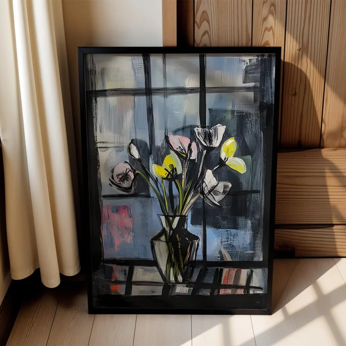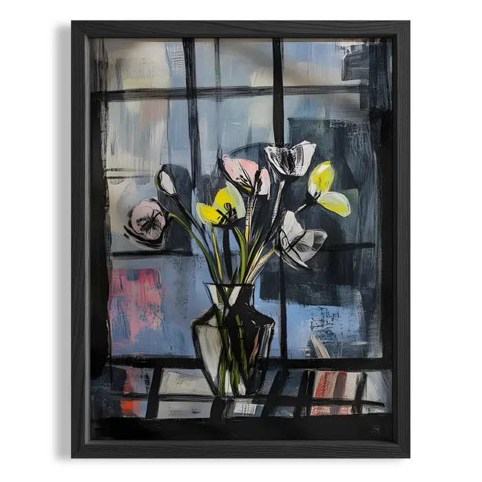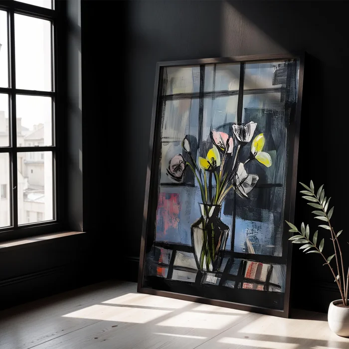 Product: Flower By The Window I - Blue Hour Wooden Framed Print
