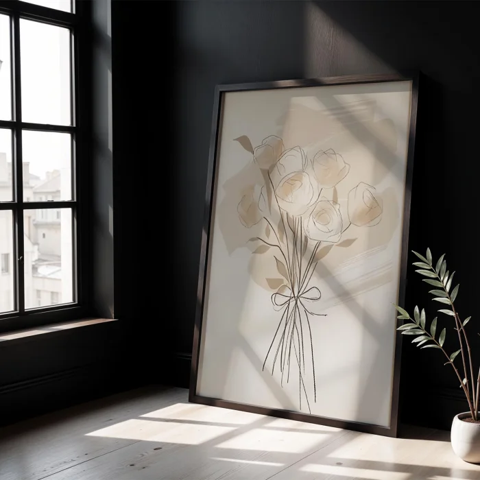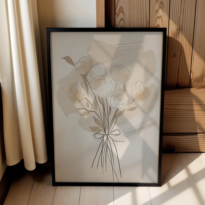 Product: Flower Vase Cream Bouquet Wooden Framed Print