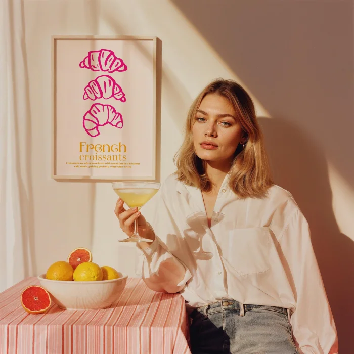 Product: French Croissants Pink French Breakfast Culture Kitchen Wall Art