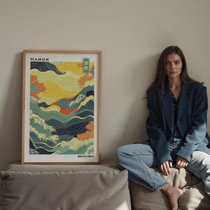 Hamon Dalga Deseni Wood-framed Art Print