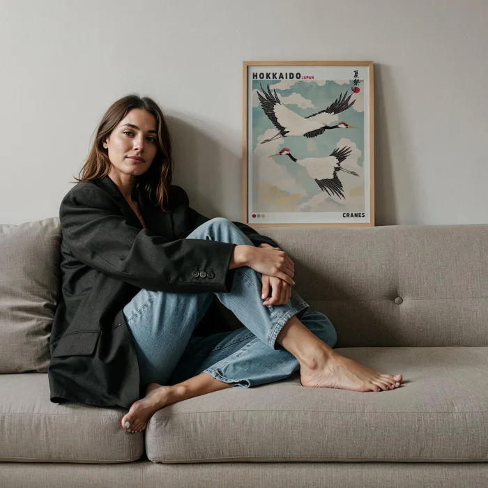 Product: Hokkaido Cranes Wood-framed Art Print