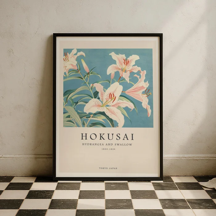 Product: Hokusai Hydrangea And Swallow Wood-framed Art Print