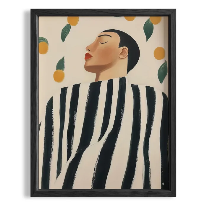 Human Portresi - Striped Boho Wooden Framed Wall Art