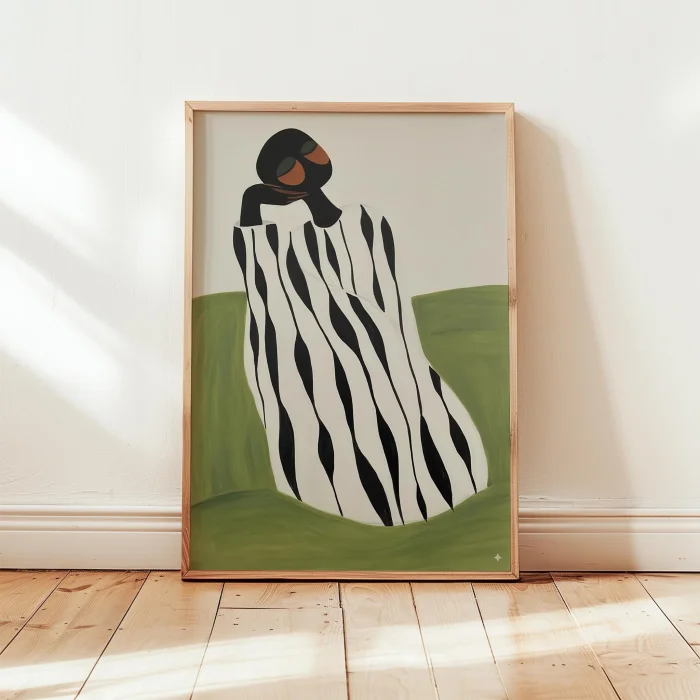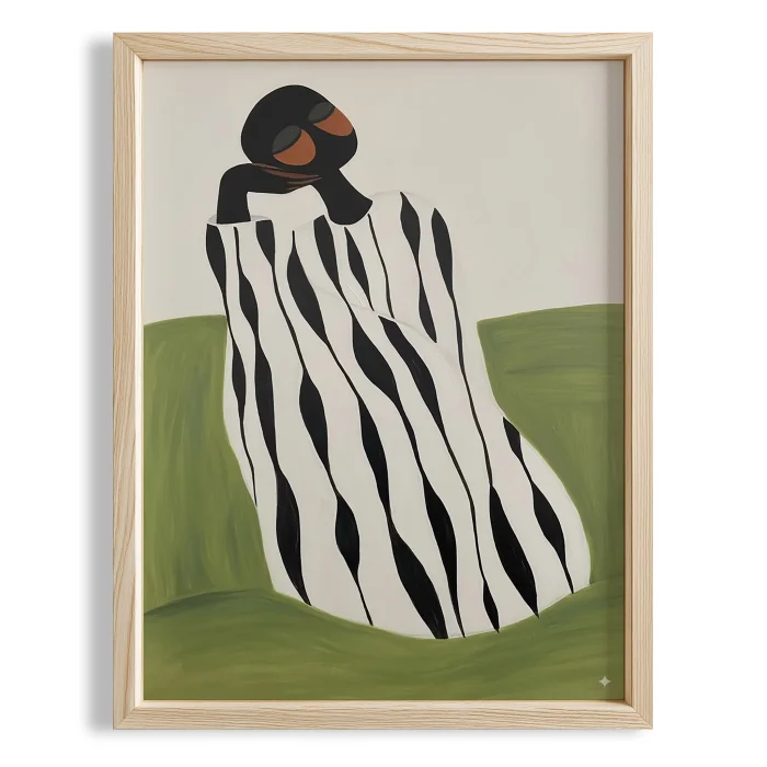 Human Portresi - Striped Boho Wooden Framed Wall Art