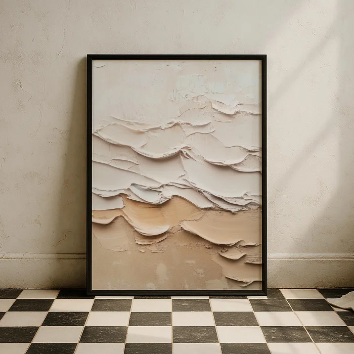 Product: Japandi Bej Beyaz Sahil Wood-framed Art Print