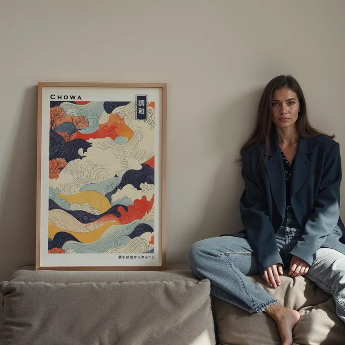 Product: Japandi Uyum Dalgası Wood-framed Art Print