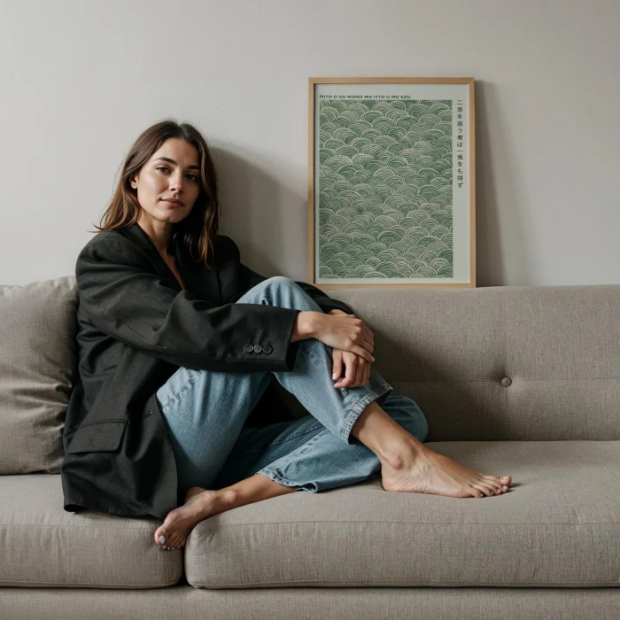 Product: Japandi Yeşil V - Krallar Ve Uyum Wood-framed Art Print