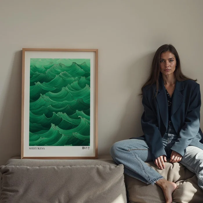 Product: Japandi Yeşil Viii - Sessizlik Wood-framed Art Print