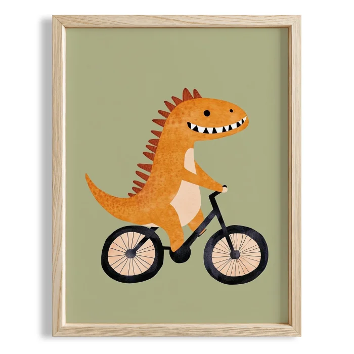 Product: Bisiklet Riding Dinosaur-themed Green Background Kids' Room Wooden Wall Art I