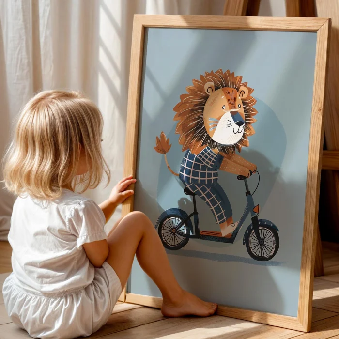 Product: Bisiklet Riding Lion Boys' Room Wooden Wall Art
