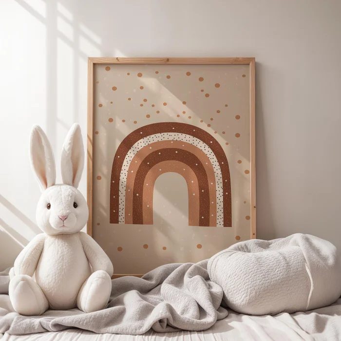 Product: Boho Style Rainbow And Dots Kids Room Wooden Wall Art