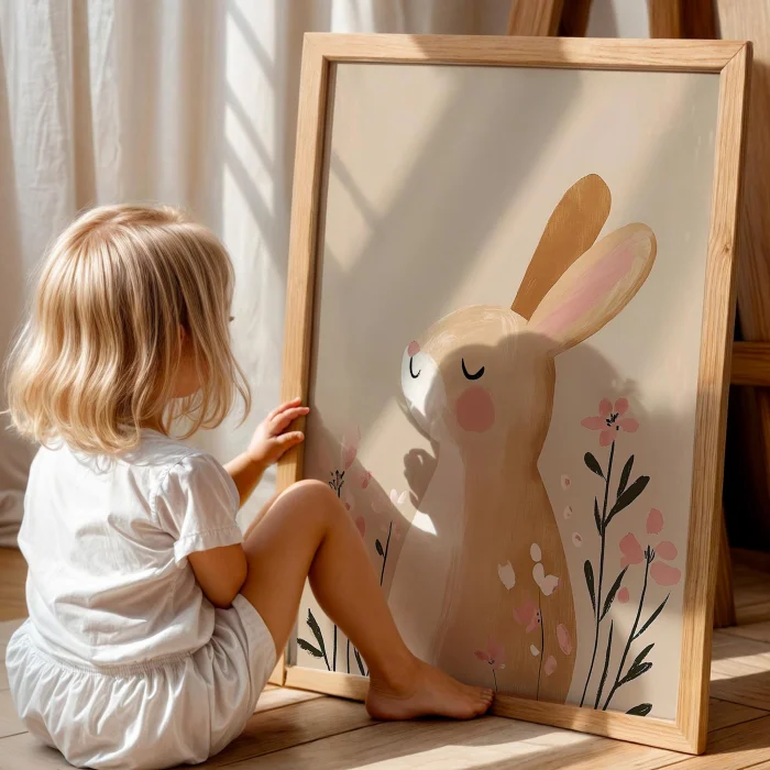 Çiçekli Tavşancık - Boho Girls' Room Wooden Wall Art