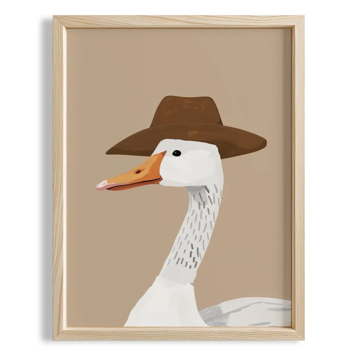 Product: Cowboy Duck I With Beige Background Boys' Room Wooden Wall Art