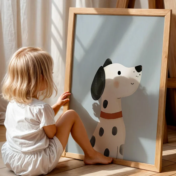 Product: Cute Dog Blue Animal -themed Boys' Room Wooden Wall Art I