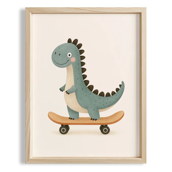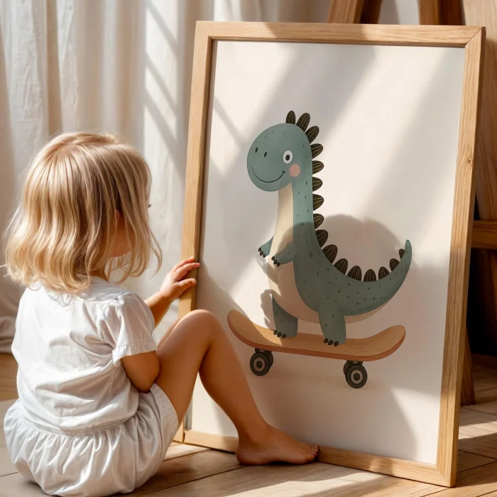Product: Cute Kaykaycı Blue Dinosaur Boys' Room Wooden Wall Art