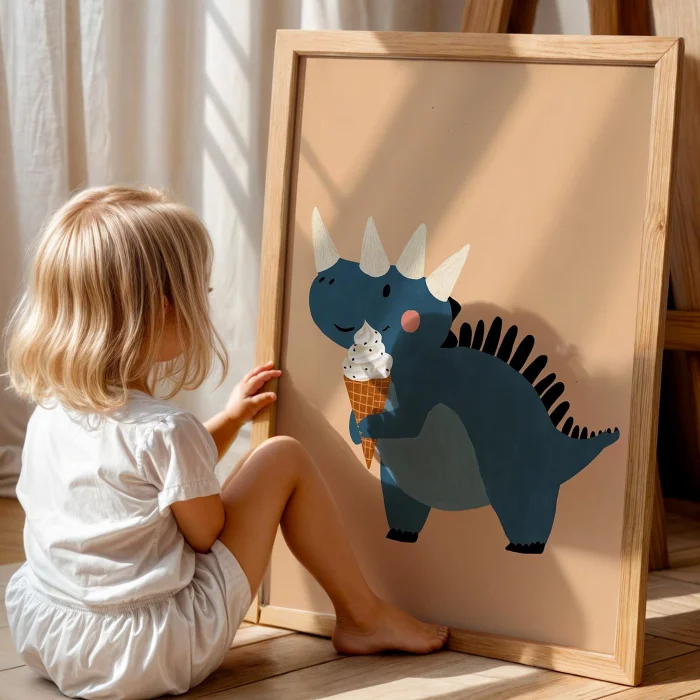 Product: Dondurma Yiyen Dinosaur-themed With Beige Background Kids' Room Wooden Wall Art