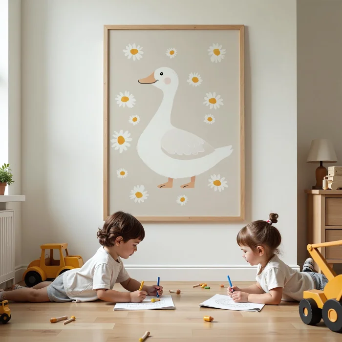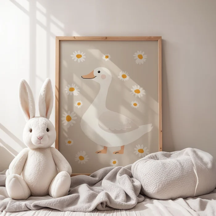 Product: Goose Among Daisies - Children's Room Wooden Wall Art