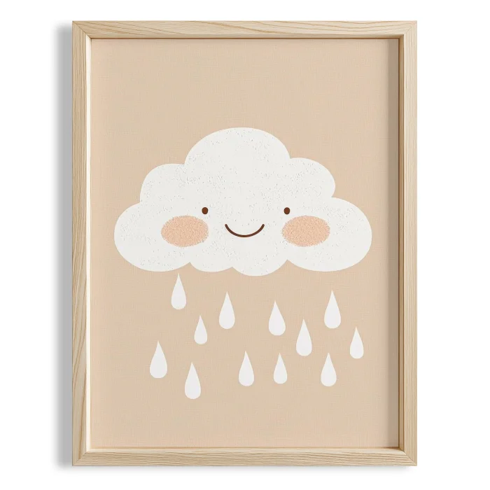 Product: Raindrops And Smiling Cloud Kids Room Wooden Wall Art